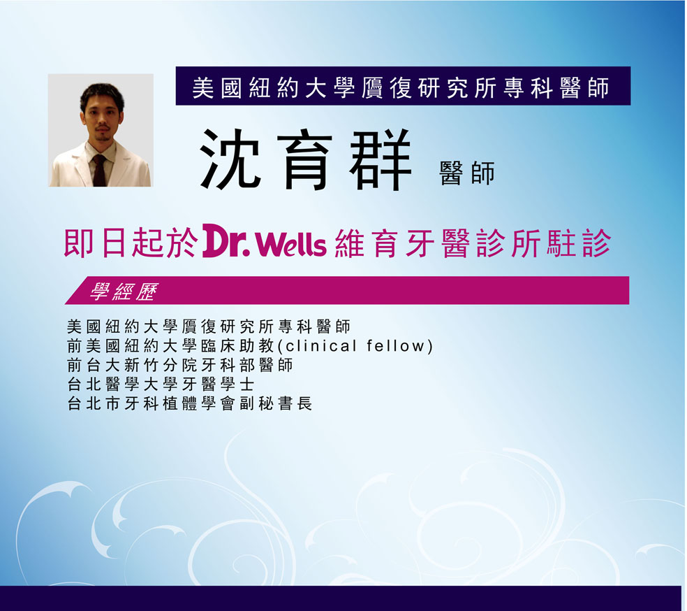 今天牙醫超人要帶大家認識的是 Dr. Wells 維育牙醫診所的新進醫師